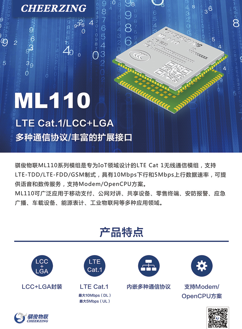 ML110 LTE Cat.1/LCC+LGA/多种通信协议/丰富的扩展接口
